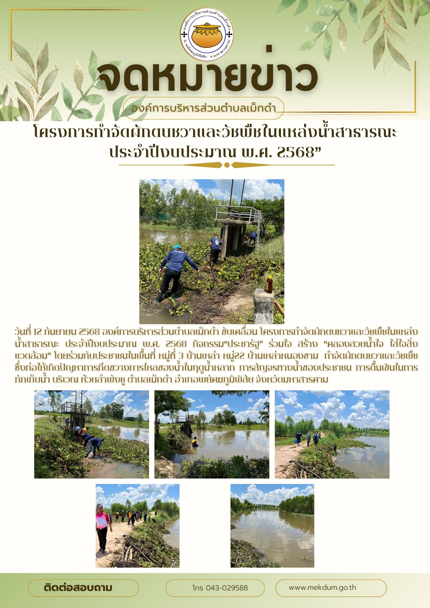 โครงการกำจัดผักตบชวาและวัชพืชในแหล่งน้ำสาธารณะ ประ...
